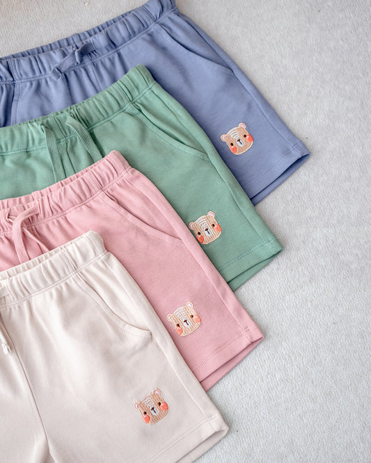 LEBEAR EMBROIDERY JOGGER SHORTS BUNDLE OF 4 (STEEL BLUE, TEA ROSE, PINE GREEN & BEIGE)