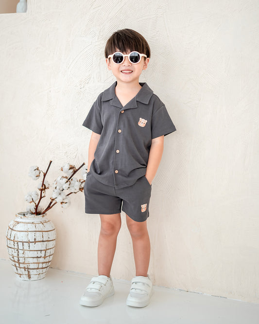 MIKA CAMP COLLAR SHIRT SET IN CHARCOAL GREY