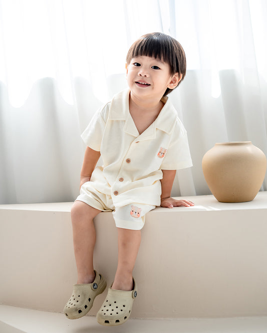 MIKA CAMP COLLAR SHIRT SET IN CREAM BEIGE