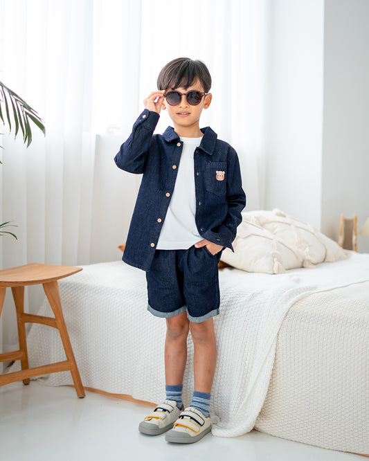 LEBEAR DENIM SHORTS IN LIGHT WASH