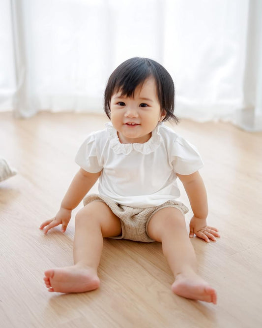 Oak and Sand Baby Cot Sheet in Cloudy Warm White