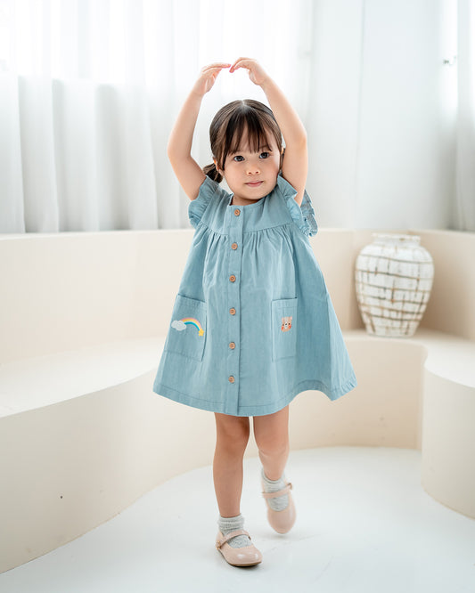 LEBEAR DENIM RUFFLE RAINBOW DRESS