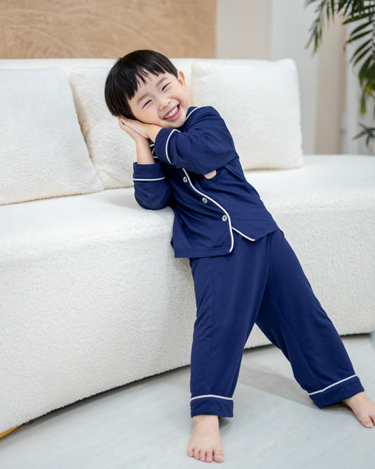 LEBEAR KIDS LUXE COMFORT PYJAMAS IN DUSK BLUE