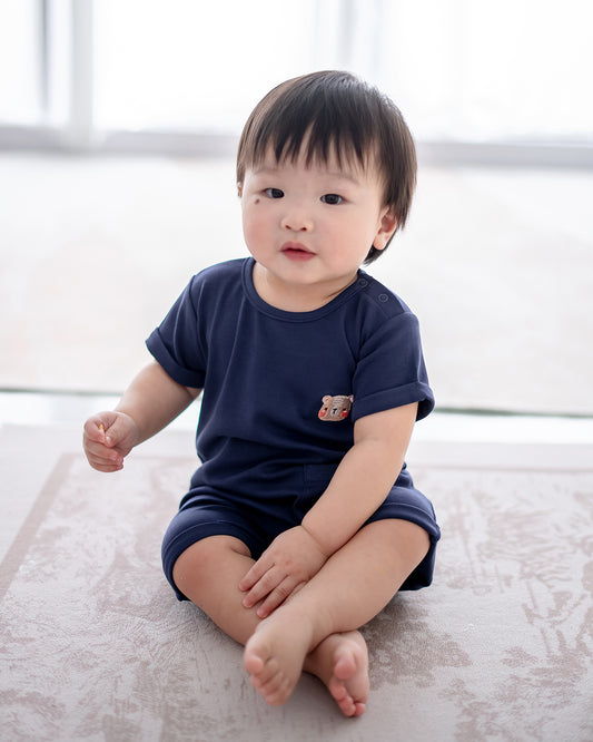 LEBEAR SIGNATURE EMBROIDERY ONESIE IN DEEP SEA BLUE