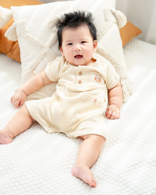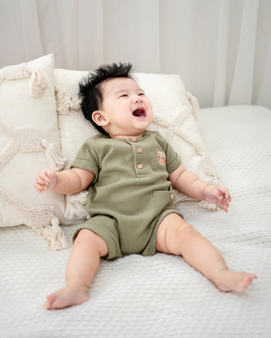 HELLO WAFFLE ONESIE IN OLIVE GREEN