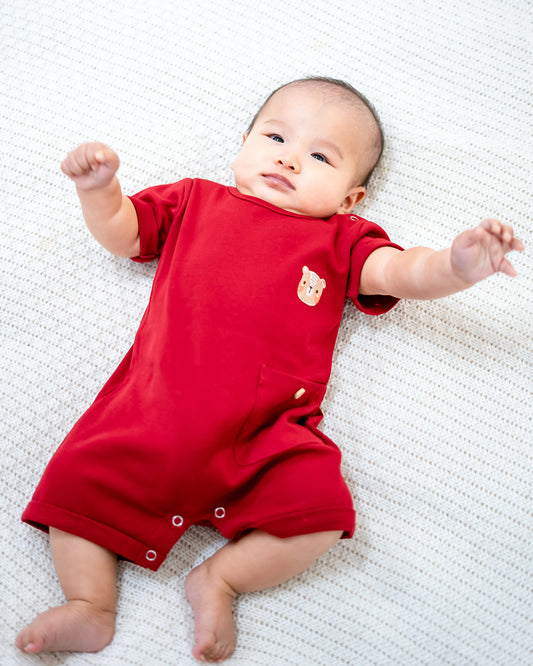 (BACK ORDER) LEBEAR SIGNATURE EMBROIDERY ONESIE IN RED