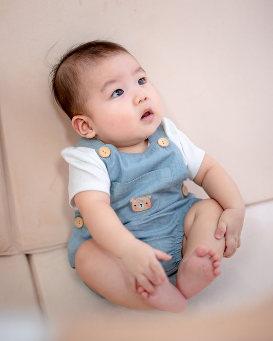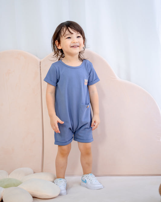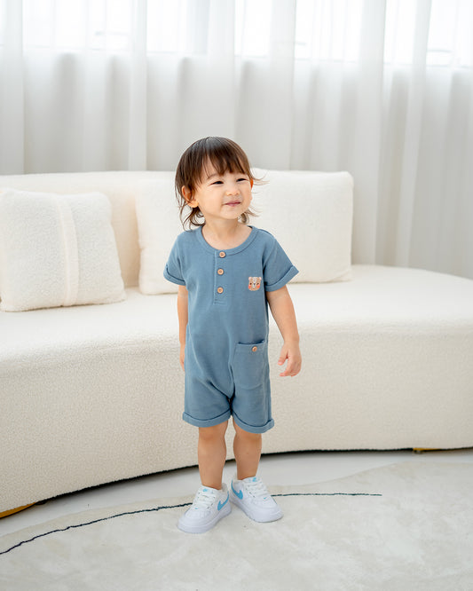 (BACK ORDER) LEBEAR SIGNATURE EMBROIDERY ONESIE IN STEEL BLUE