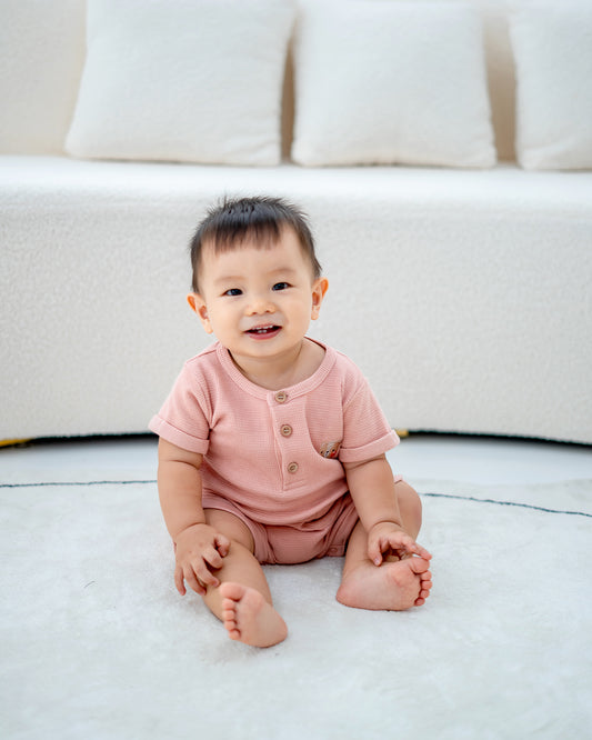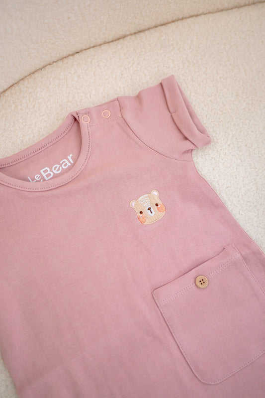 LEBEAR SIGNATURE EMBROIDERY ONESIE IN TEA ROSE