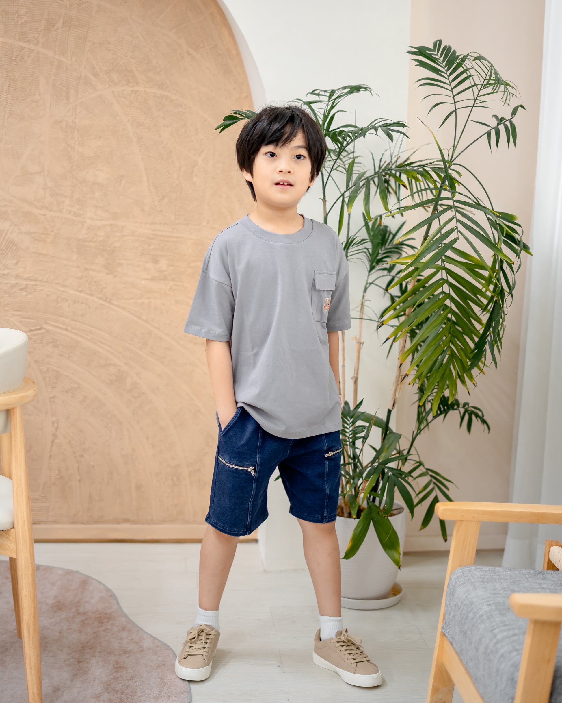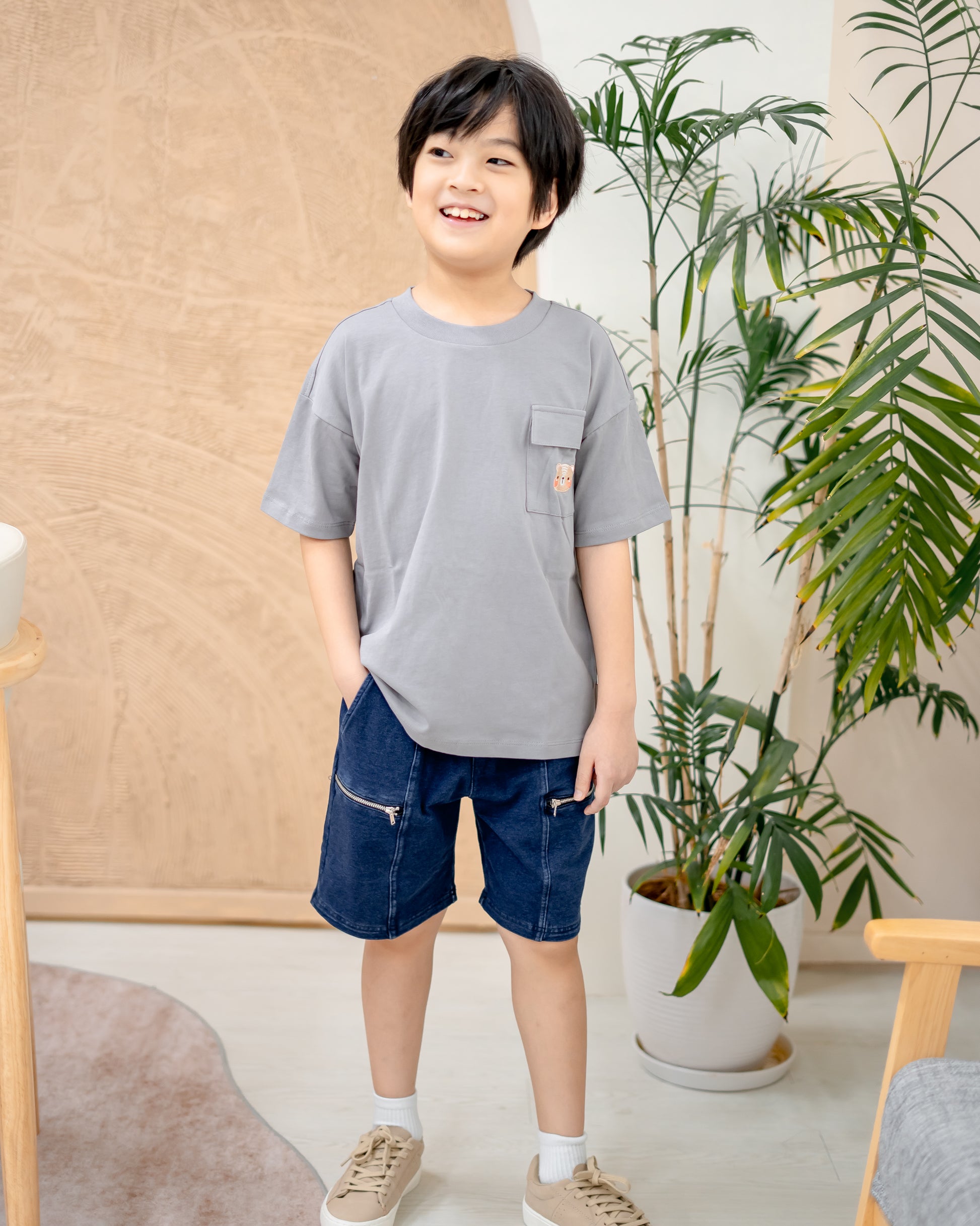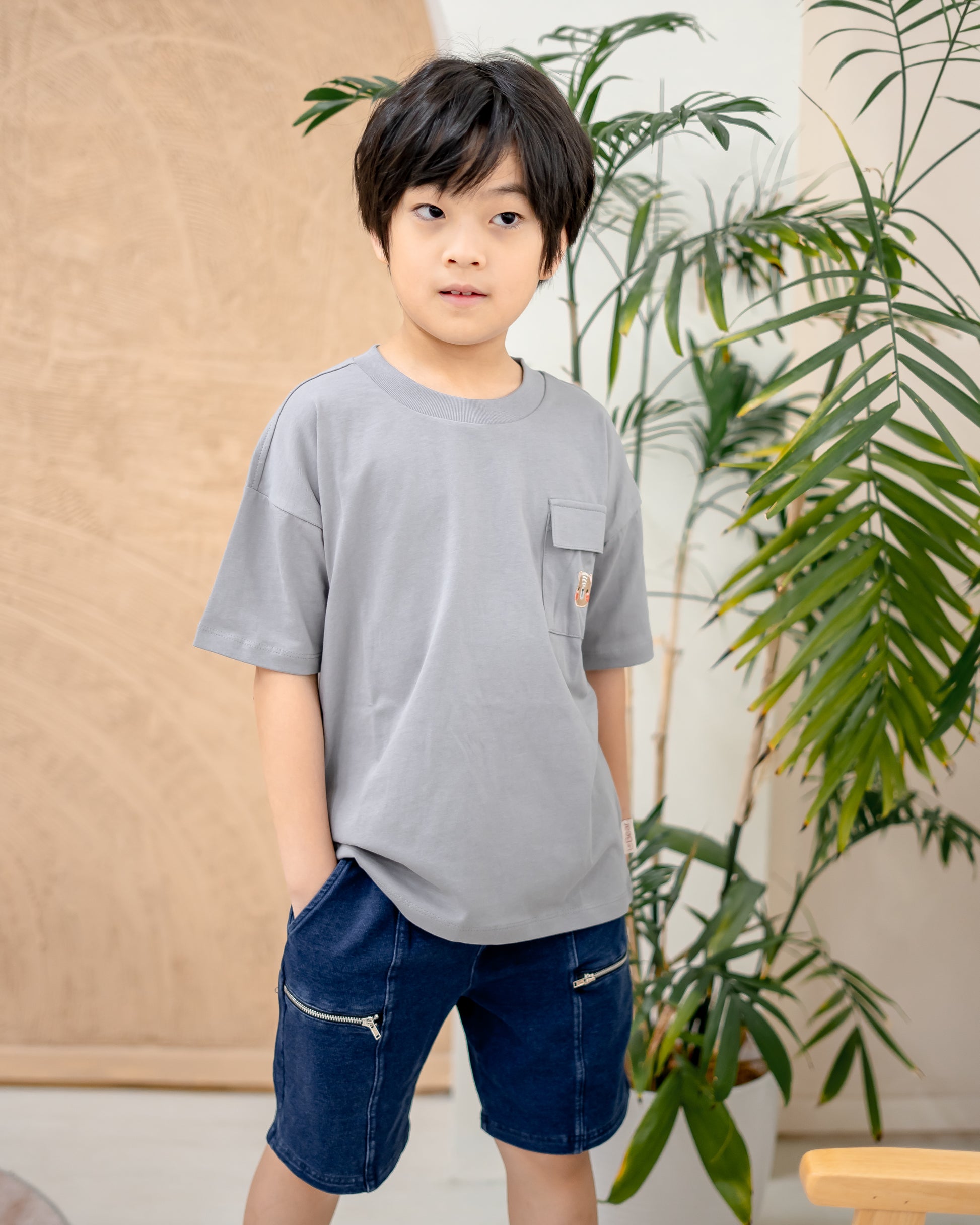 LEBEAR KIDS OVERSIZED POCKET TEE IN LIGHT GREY