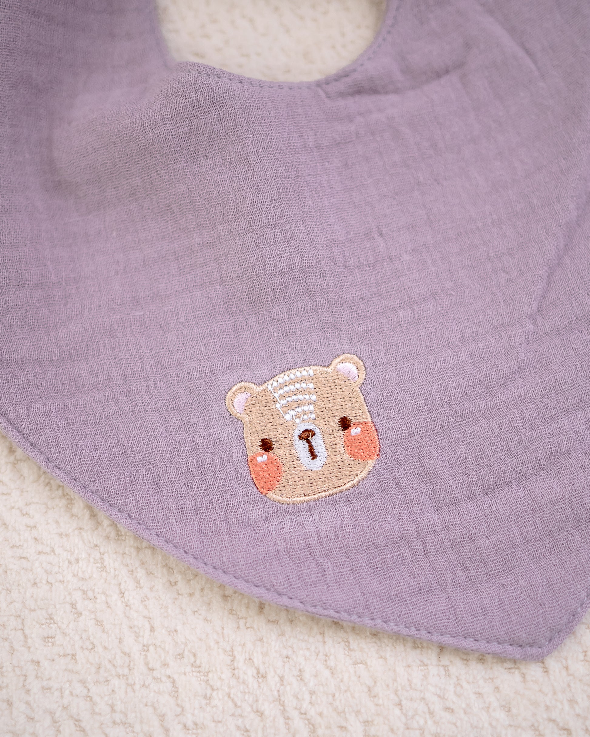 LEBEAR MUSLIN COTTON BABY BIB IN LAVENDER